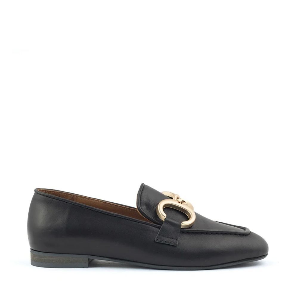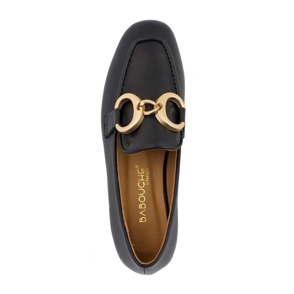 Deze Babouche schoenen zijn gemaakt van luxe leer en zijn afgewerkt met een mat gouden bit op de wreef. Met deze mooie zwarte loafers geef je ieder outfit een chique en vrouwelijke uitstraling! Maar ook weer super stoer onder een jeans.