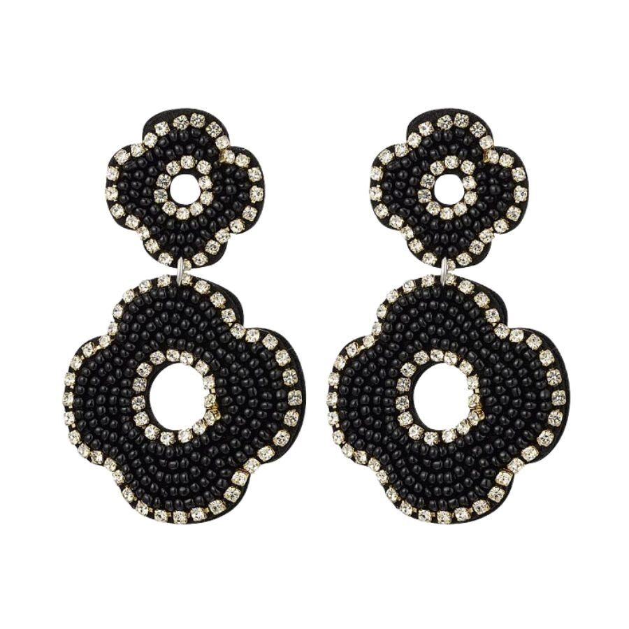 A jewellery musthave! Hoe leuk zijn deze zwarte oorbellen in de vorm van twee bloemen, gemaakt van kralen. Daarnaast hebben de oorbellen prachtige zilveren details.
